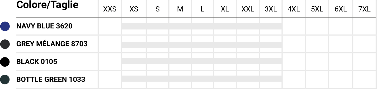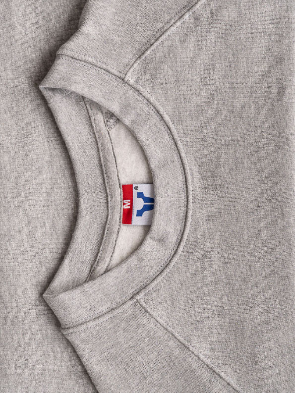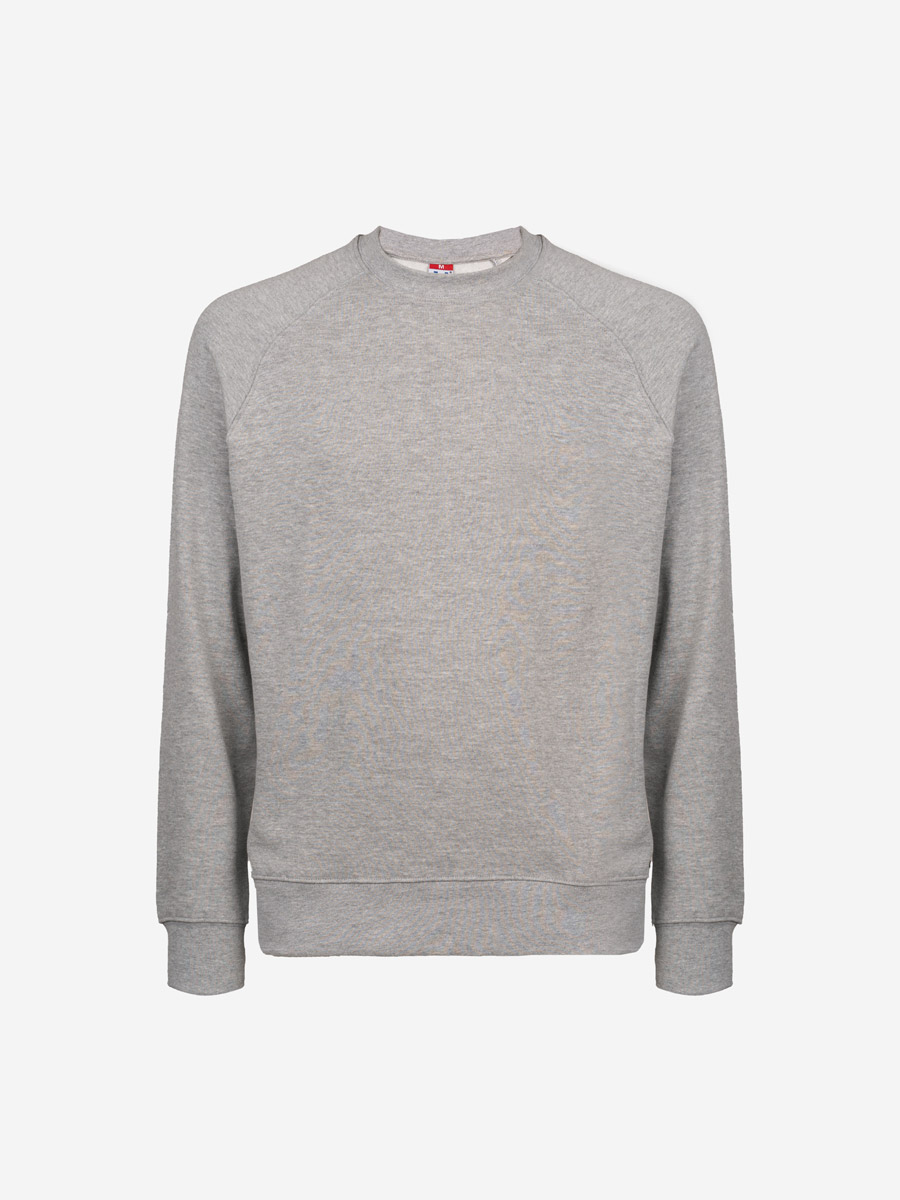 Girocollo, maniche lunghe a raglan, tessuto garzato 20% poliestere + 80% cotone. Collo, polsini e fondo in costina elasticizzata.